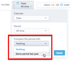 - Same period of the previous year—For example, you can display data for March 2018 and compare it to March 2017.